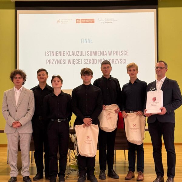W konkursie wzięło udział 12 zespołów z różnych liceów, m.in. z Krakowa, Piekar, Dębicy, Tarnowa, Środy Wielkopolskiej. Najlepszymi debatantami okazali się uczniowie z II Liceum Ogólnokształcącego im. ks. Jana Twardowskiego w Dębicy, a drugie miejsce zajęło III Liceum Ogólnokształcące im. Adama Mickiewicza w Tarnowie. Serdecznie gratulujemy!