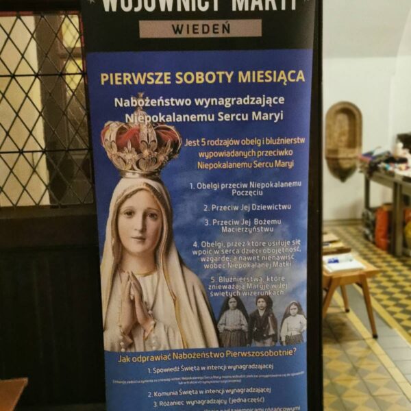 W każdą pierwszą sobotę miesiąca Wiedeńska Polonia spotyka się w kościele św. Seweryna, by zgodnie z życzeniem Matki Najświętszej przekazanym s. Łucji w Fatimie wynagradzać Niepokalanemu Sercu za wszelkie zniewagi i obelgi.